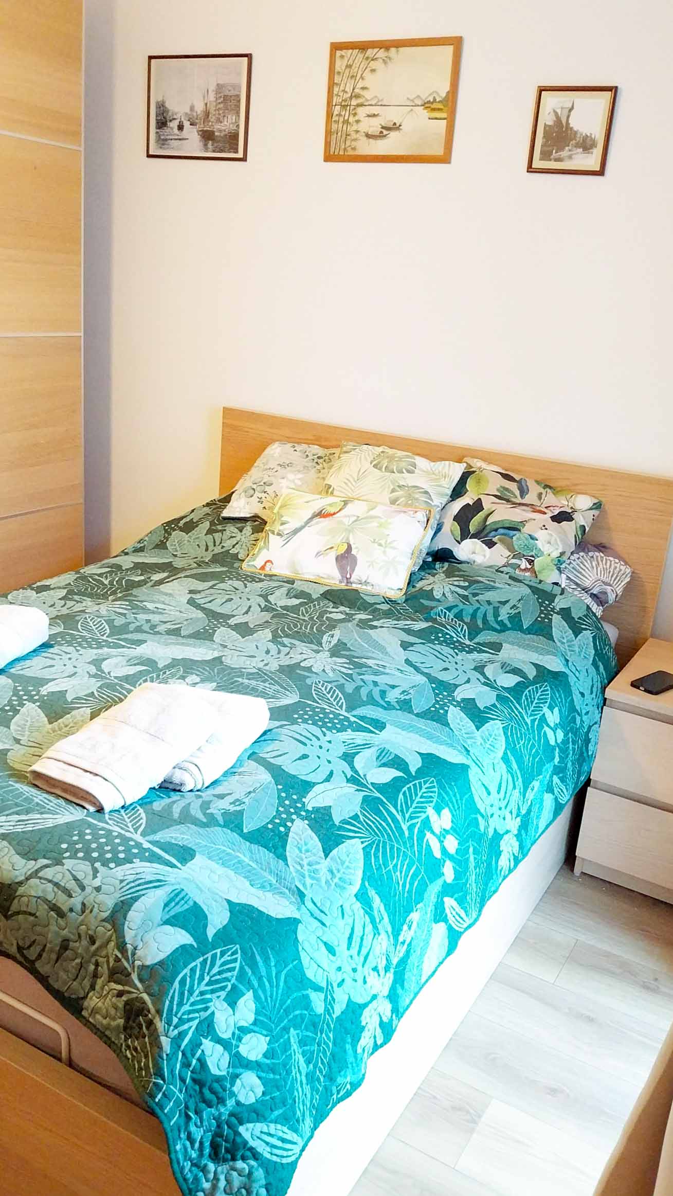 Apartament przeznaczony jest dla maksymalnie 4 osób. Posiada oddzielną sypialnię oraz salon z rozkładaną kanapą. To wygodne rozwiązanie dla rodzin lub małych grup.