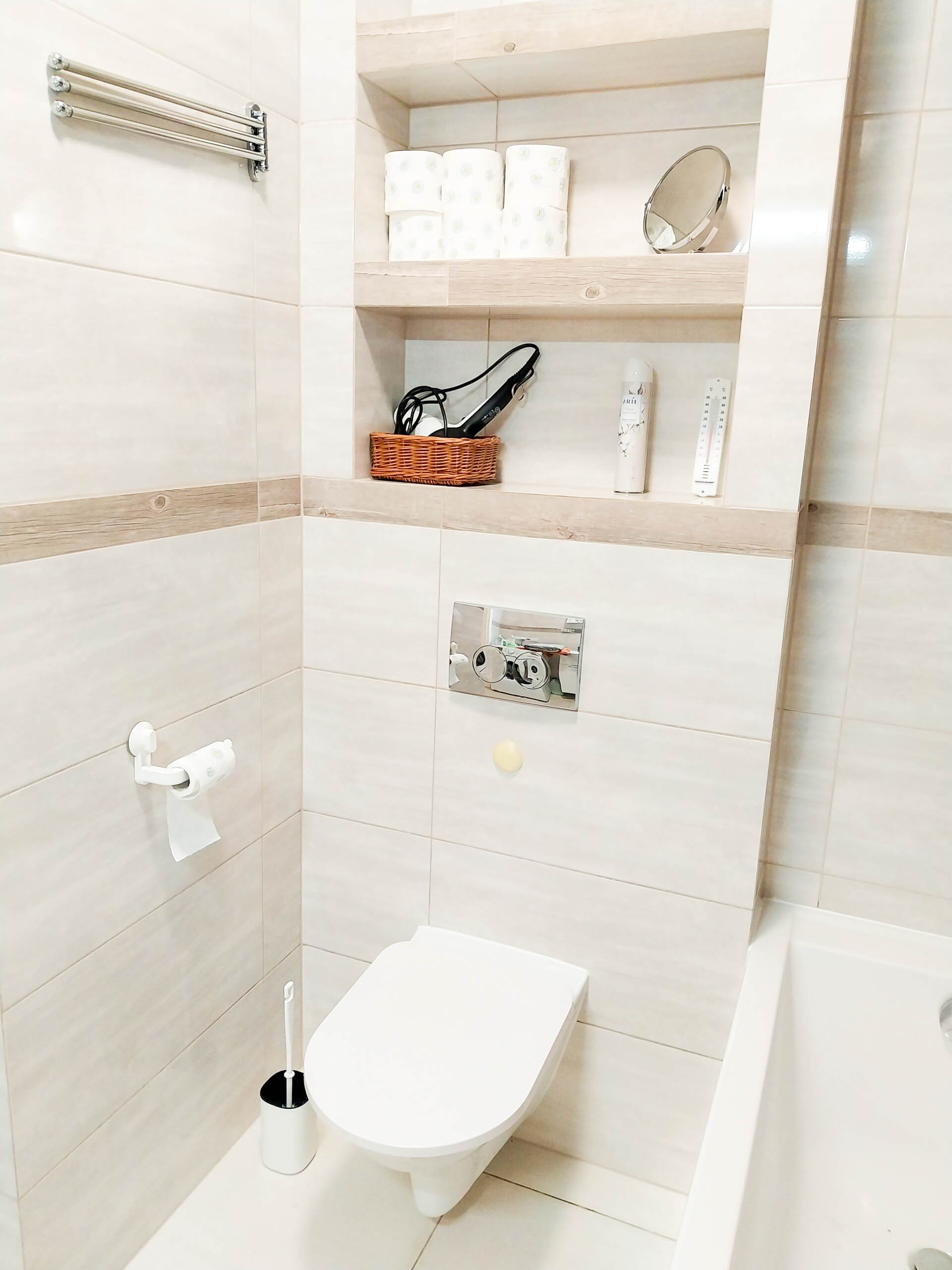 Kuchnia jest w pełni przygotowana do gotowania – znajdziesz tu ekspres do kawy, zmywarkę oraz podstawowe produkty (herbata, przyprawy, olej), dzięki czemu nie musisz zaczynać pobytu od zakupów. Do Twojej dyspozycji jest również pralka, szybkie Wi-Fi oraz świeża pościel i ręczniki dla każdego gościa.